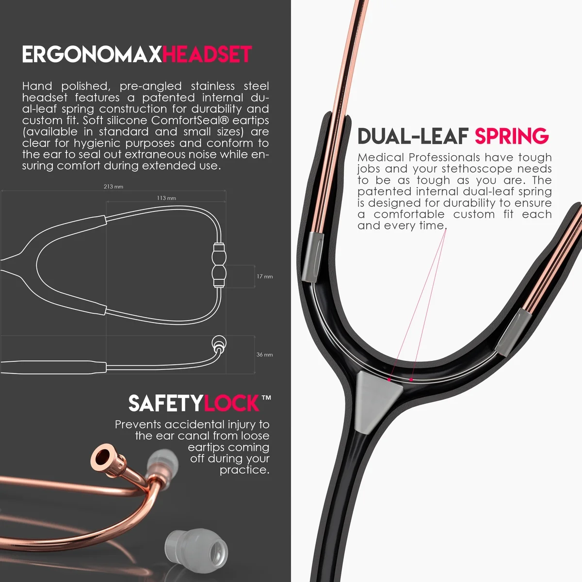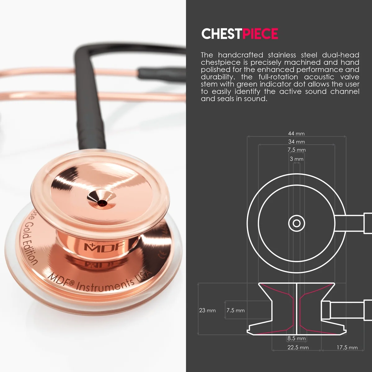 گوشی پزشکی mdf 777 رزگلد مشکی به عنوان گوشی پزشکی باکیفیت یا بهترین انتخاب برای استفاده جنرال و معاینات روتین شناخته شده. اگر دانشجوی پزشکی یا پزشک عمومی هستید و به دنبال گوشی پزشکی باکیفیت میگردید که در قبال پرداخت مبلغ نه چندان زیاد، چندین سال کارایی بده، خرید گوشی پزشکی mdf 777 مشکی رزگلد گزینه خوبی به حساب میاد.