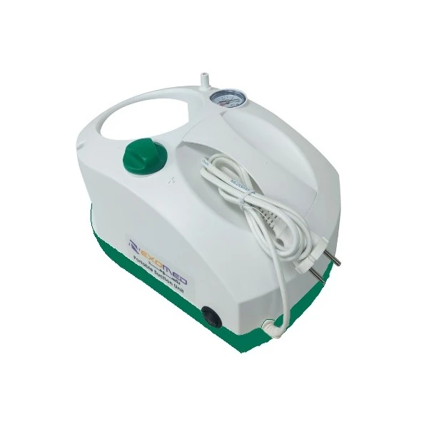 دستگاه ساکشن رو میزی پرتابل نکسومد مدل TTP110 ساخت ایران می باشد. این دستگاه تک شیشه ،دارای فیلتر آنتی باکتریال جهت جلوگیری از انتقال باکتری ها و نیز دارای جار یا محفظه جمع آوری مدرج و شفاف از جنس پلی کربنات که نشکن و قابل اتوکلاو کردن هست ، می باشد. بدنه دستگاه به رنگ سفید می باشد که دارای کلید روشن و خاموش کردن و نیز پیچ تنظیم قدرت مکش می باشد. داخل هر بسته یک عدد رابط ساکشن و یک سوند ساکشن سایز 16 و یک شیلینگ ساکشن می باشد. قدرت بالا و صدای کم و نیز لرزش مختصر و کارکرد آسان از مزایا این دستگاه می باشد. درب جار دستگاه دارای دو ورودی می باشد که یکی مخصوص شیلنگ متصل به فیلتر می باشد که به ورودی که متصل به شناور سبز رنگ می باشد و دومی به شیلنگ متصل به سوند ساکشن که روی درب بیمار حک شده وصل می شود. درب به صورت پیچی سفت می شود. این دستگاه دارای مجوز ساخت از اداره تجهیزات پزشکی ایران و تاییدیه استاندارد ایران میباشد.
